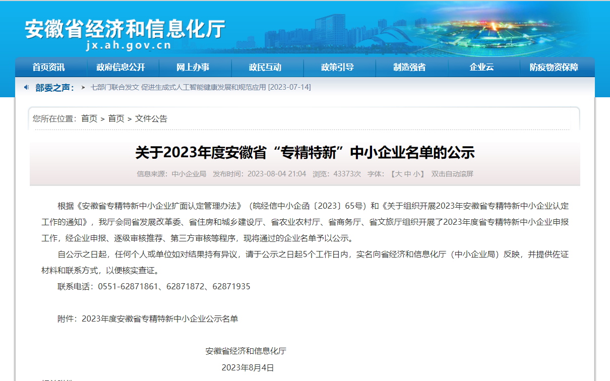 中鋼天源安徽智能裝備股份有限公司被認定為安徽省“專精特新”企業