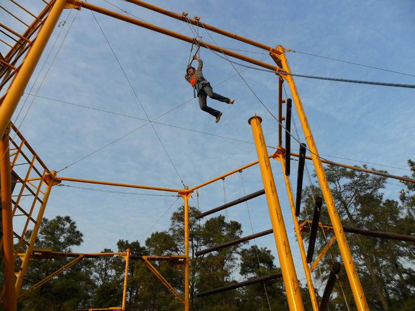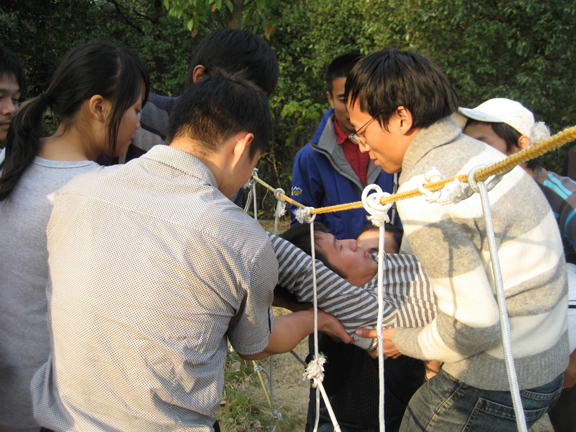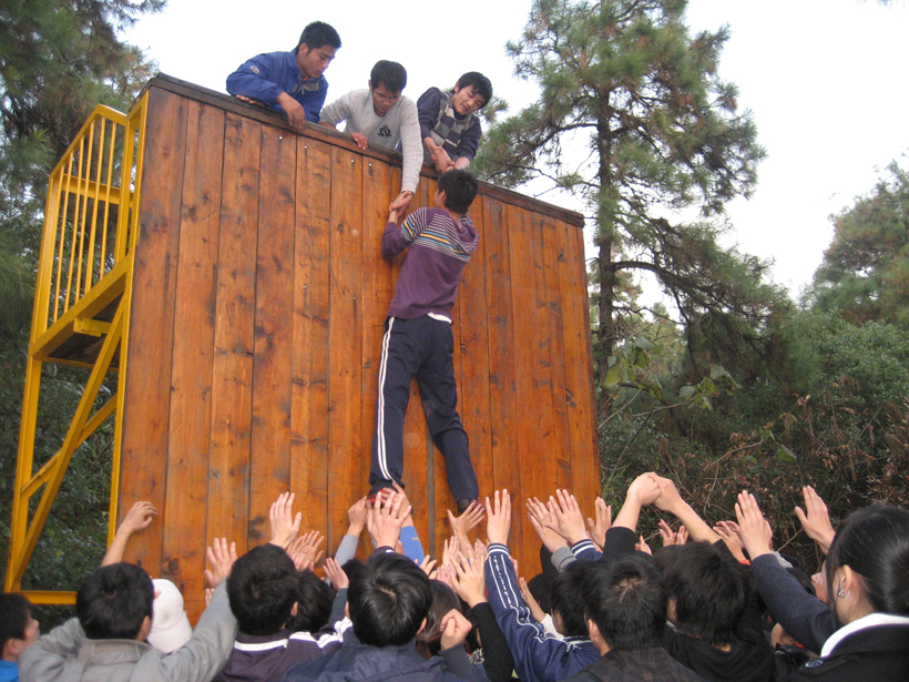 此次拓展訓(xùn)練活動(dòng)內(nèi)容豐富,活動(dòng)內(nèi)容是以增強(qiáng)青年骨干員工團(tuán)隊(duì)合作精神為主題,激發(fā)青年骨干員工自身潛能和創(chuàng)新創(chuàng)造力為目的而安排的。為了使活動(dòng)收到實(shí)效,讓每個(gè)參加活動(dòng)的青年骨干都能在活動(dòng)中充分體驗(yàn)和感受活動(dòng)內(nèi)容凸顯出來(lái)的團(tuán)隊(duì)精神,在活動(dòng)開(kāi)始時(shí),就將50名員工分成4個(gè)隊(duì),在每個(gè)隊(duì)的隊(duì)長(zhǎng)帶領(lǐng)下,每個(gè)隊(duì)都根據(jù)自己的愿望,確定了自己的隊(duì)名、活動(dòng)口號(hào)和隊(duì)歌。在活動(dòng)中4個(gè)隊(duì)按照項(xiàng)目要求,互相鼓勵(lì),互相幫助,依靠團(tuán)隊(duì)的力量和團(tuán)隊(duì)中每個(gè)隊(duì)員的智慧,克服了拓展訓(xùn)練項(xiàng)目安排的各種困難,完成了項(xiàng)目安排的只有團(tuán)隊(duì)力量才能完成的項(xiàng)目。在活動(dòng)中,4個(gè)隊(duì)都按照各自確定的不讓一個(gè)隊(duì)員掉隊(duì)的目標(biāo),齊心協(xié)力,團(tuán)結(jié)協(xié)助,全部順利完成了“天梯、空中單杠、極速60秒、穿越電網(wǎng)、逃生墻”等5個(gè)項(xiàng)目的素質(zhì)拓展訓(xùn)練。
