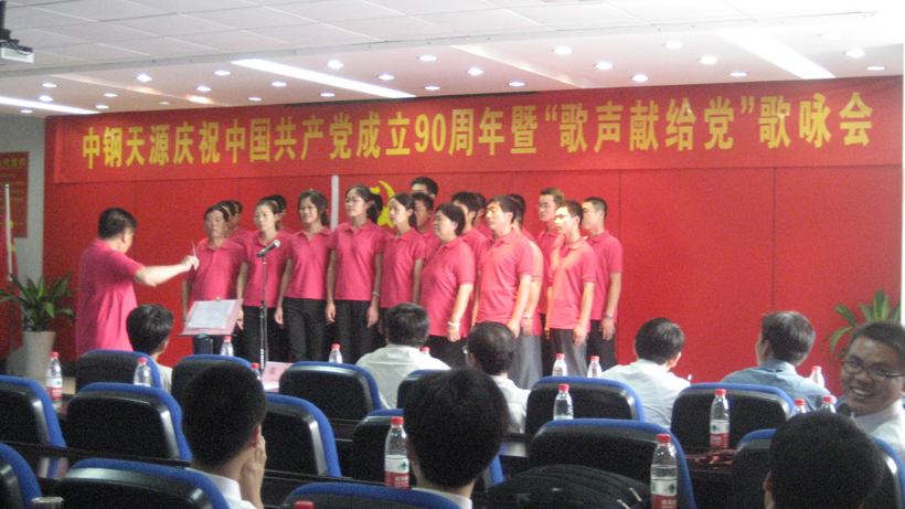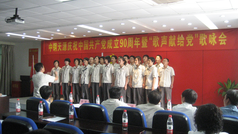 為隆重慶祝中國共產(chǎn)黨成立90周年,歌頌建黨以來的輝煌成就和豐功偉績,鼓舞廣大干部員工堅(jiān)定跟黨走,當(dāng)好建設(shè)者,建功“十二五”,為公司持續(xù)穩(wěn)定健康發(fā)展作出新貢獻(xiàn),7月1日,中鋼天源慶祝建黨90周年“歌聲獻(xiàn)給黨”演唱會在馬鞍山經(jīng)濟(jì)技術(shù)開發(fā)區(qū)黨員活動中心隆重舉行,由各單位組成的7支代表隊(duì)精心準(zhǔn)備,排著整齊的隊(duì)伍,精神飽滿地參加了演唱會,用最美的歌聲慶祝中國共產(chǎn)黨誕生90周年,抒發(fā)對黨、對祖國、對人民的赤誠之心。