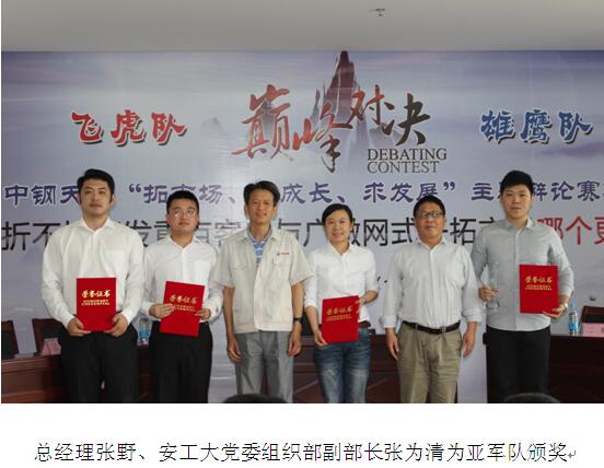 5月27日下午,中鋼天源第一培訓教室成為激情和歡樂的海洋,掌聲和歡呼聲不斷,由中鋼天源綜合、市場部(合署)、團委聯合主辦的“拓市場、促成長、求發展”主題辯論賽決賽隆重舉行,唇槍舌劍、精彩紛呈,各大獎項相繼出爐,為這場賽程近一個月、上百名員工參與的活動畫上完美的句號。共青團馬鞍山市委書記錢俊、安徽工業大學黨委組織部副部長張為清應邀擔任評委,中鋼天源董事長、黨委書記洪石笙、總經理張野、黨委副書記、紀委書記亞海斌、副總經理芮沅林、副總經理余進出席比賽并頒獎。公司高管、各部門、各單位負責人、各黨支部書記、團支部書記及部分青年代表共80余人到場觀看了比賽。