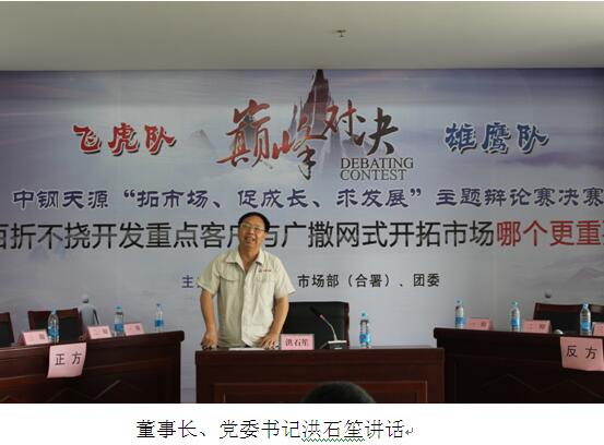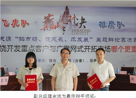 隨后,公司領導和嘉賓分別為獲獎隊伍和最佳辯手頒獎。公司董事長、黨委書記洪石笙在閉幕講話中指出,本次比賽形式新穎,充分結合了公司“緊貼市場求生存”的管理理念,為公司踐行“致力磁業進步、滿足顧客需求”的使命進一步統一了思想、提高了認識。他強調,2017年公司明確了“以市場為導向,以創新促發展”的經營思路,公司也成功取得了證監會關于重組募集配套資金的批復,公司發展即將邁入新的階段,新形勢新任務要求我們要繼續以百折不撓的精神去開拓市場,要以廣撒網式的精神去開發客戶,要在新的行動上去實現好的品質,通過這種好品質使我們的核心競爭力得到強化、鞏固和提高,廣大青年員工要加強學習,培養能力,把我們的理念推向客戶,以實際行動踐行與傳承公司發展,為實現中鋼天源早日成為“國內一流、國際知名”的創新型企業而努力奮斗。