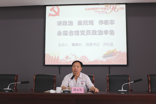 中鋼天源董事長(zhǎng)、黨委書(shū)記洪石笙作《講政治、重規(guī)矩、作表率,永葆合格黨員政治本色》的專題黨課報(bào)告,報(bào)告從“講政治是合格黨員的根本要求、重規(guī)矩是合格黨員的基本底線、作表率是合格黨員的根本落腳點(diǎn)三個(gè)方面”進(jìn)行了講解,要求全體黨員要進(jìn)一步增強(qiáng)發(fā)展的信心,嚴(yán)以修身、勇于負(fù)責(zé)、敢于擔(dān)當(dāng),做到“政治合格、執(zhí)行紀(jì)律合格、品德合格、發(fā)揮作用合格”,不忘初心,永葆合格黨員政治本色,充分發(fā)揮先鋒模范作用,抓好當(dāng)期生產(chǎn)經(jīng)營(yíng),千百百計(jì)完成今年目標(biāo)任務(wù),創(chuàng)造更好業(yè)績(jī)。
