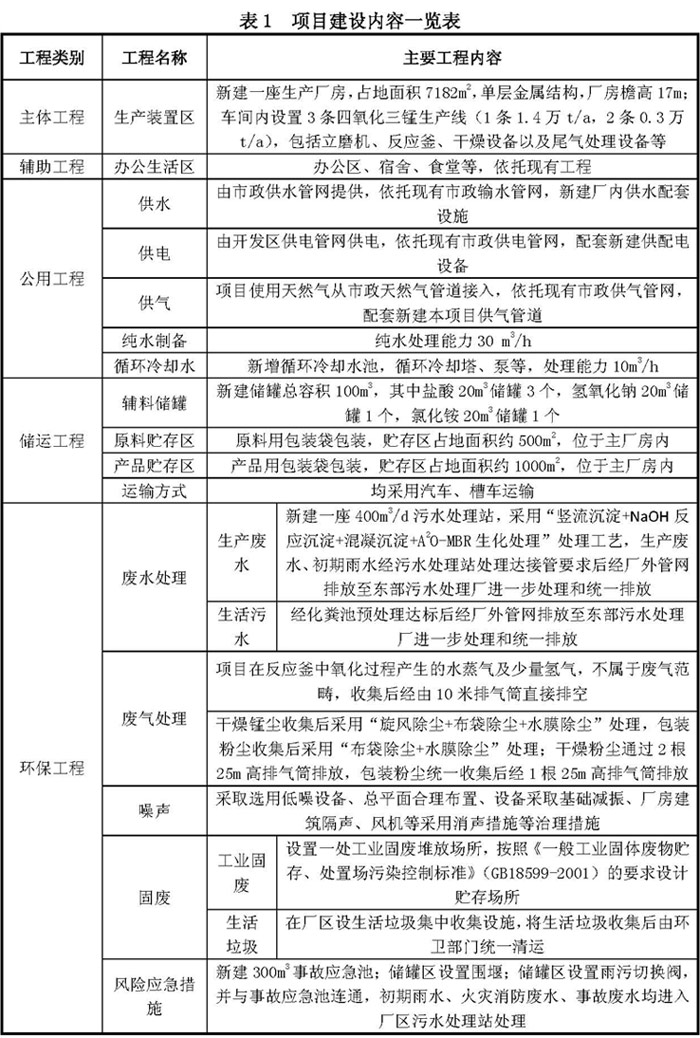 項目名稱:年產二萬噸鋰電池及軟磁用高純四氧化三錳項目;